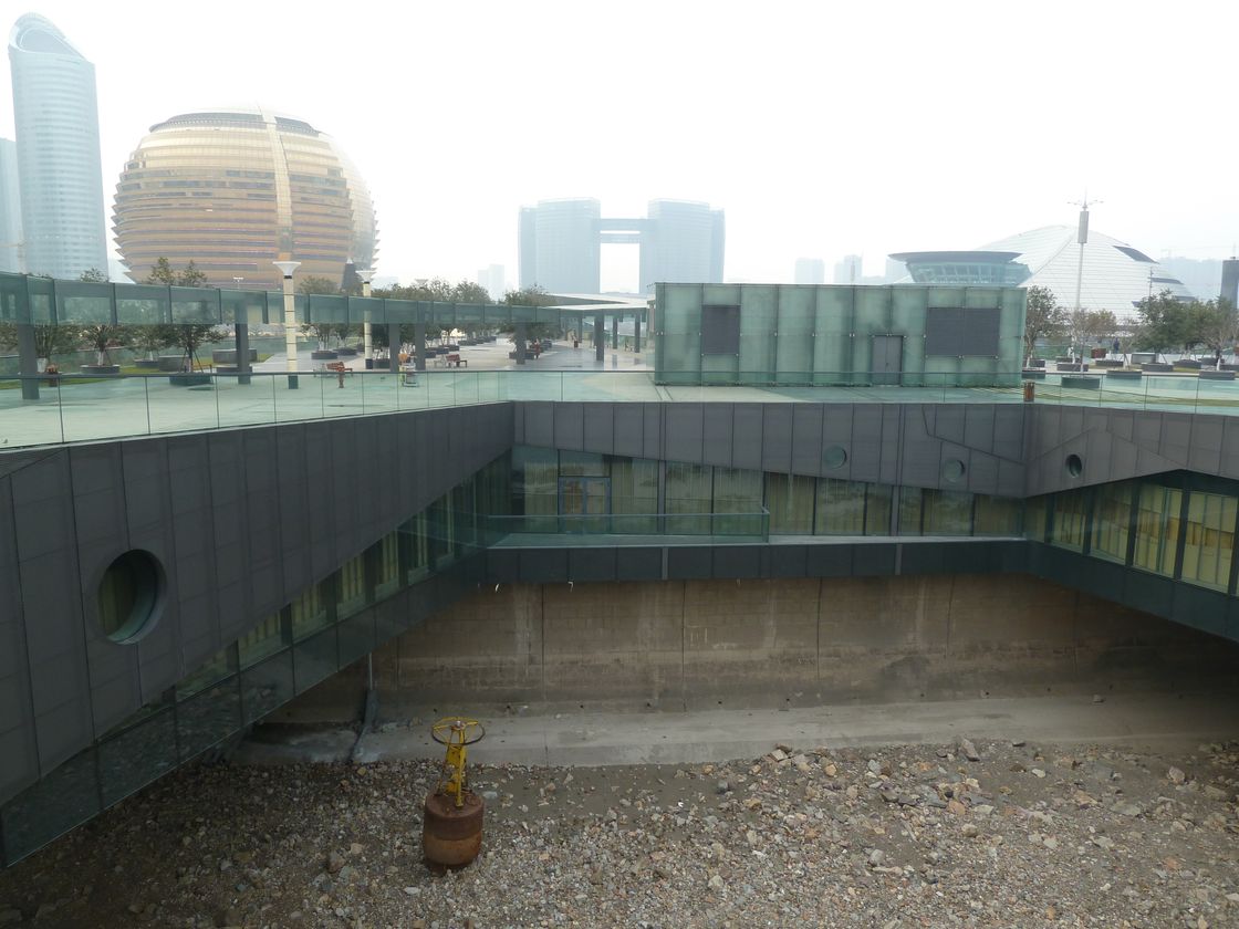เข้ามาดูใน Visitor Center กันบ้าง พื้นที่ภายในตอนนี้ยังไม่ได้ถูกใช้งานทั้งหมด ส่วนหนึ่งเขาเอามาจัดนิทรรศการเกี่ยวกับศูนย์กลางธุรกิจแห่งใหม่ของเมืองหังโจวนี้