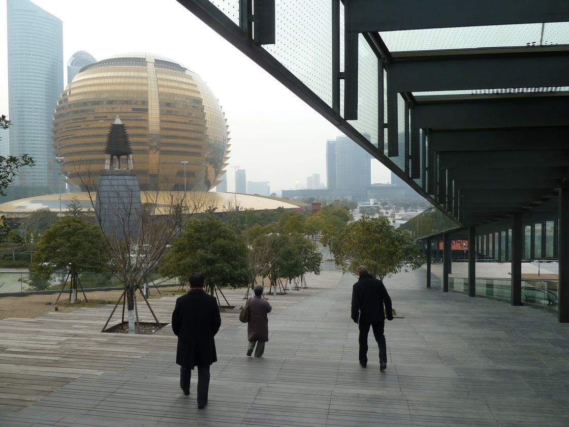 จากคราวที่แล้วที่นำอาคารโรงแรม InterContinental อาคารพระอาทิตย์ของเมืองหังโจวมาให้ชมกัน คราวนี้ขอพามาชมงานที่อยู่ข้างๆกันบ้าง งาน Hangzhou City Balcony นี้จัดเป็นงานที่ผสมผสานกันระหว่างสถาปัตยกรรม กับภูมิสถาปัตยกรรมครับ เนื่องจากการใช้งานบางส่วนของอาคารนั้นเป็นส่วนช็อปปิ้ง(ใต้ดิน) ส่วนที่อยู่ริมแม่น้ำ Qianjiang เป็น Visitor Center และพื้นผิวด้านบนนั้นใช้เป็นสวนสาธารณะ ซึ่งเชื่อมระหว่างอาคารหลักๆที่สำคัญของศูนย์กลางเมืองหังโจวนี้อย่าง อาคารศาลาว่าการเมือง (Civic Center), โรงละคร, และศูนย์ประชุมไปในตัว