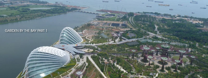 กลุ่มอาคาร Garden by The bay ออกแบบโดย Wilkinson Eyre Architects / Atelier Ten Architects เป็นการออกแบบอาคารที่มีการคำนึงถึงสภาพแวดล้อม มีลักษณะเป็น cooling green house ที่ตั้งใจให้เป็น อาคาร carbon-neutral มีการรวบรวมน้ำบนพื้นผิวอาคารกลับไปใช้และการนำพลังงานแสงอาทิตย์กลับมาใช้ในเวลากลางคืน ปัจจุบันอาคารนี้ เพิ่งได้รับรางวัล World Architecture Festival Award และเป็นส่วนหนึ่งของกลุ่มอาคารในการพัฒนา Marina Bay มีการบริหารงานและดูแลโครงการโดย คณะกรรมการดูแลอุทยานแห่งชาติ National Park ของรัฐบาลสิงคโปร์