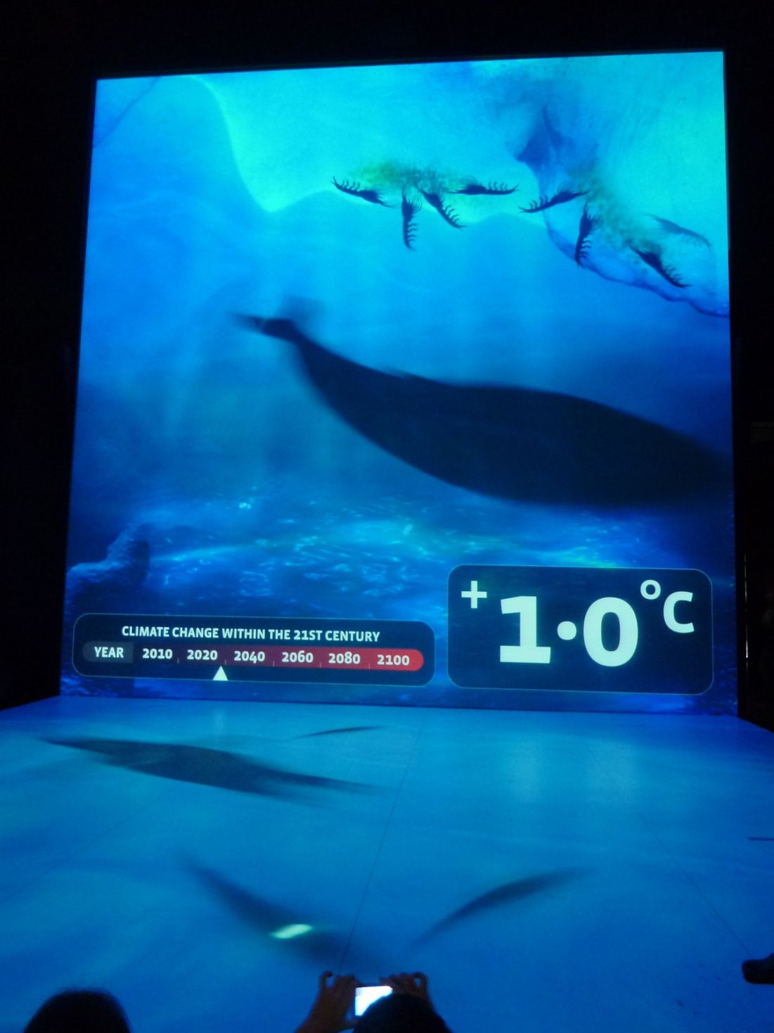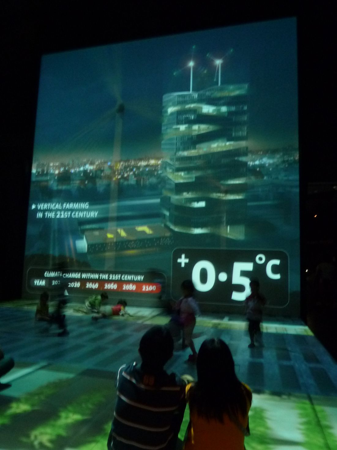เกือบทางออก highlight ของอาคารมีโถงใหญ่แสดงวีดีโอแสดงสภาพอากาศและภาวะโลกในปี 2100 หากเรายังไม่ช่วยกันรักษาสิ่งแวดล้อมและประหยัดพลังงาน